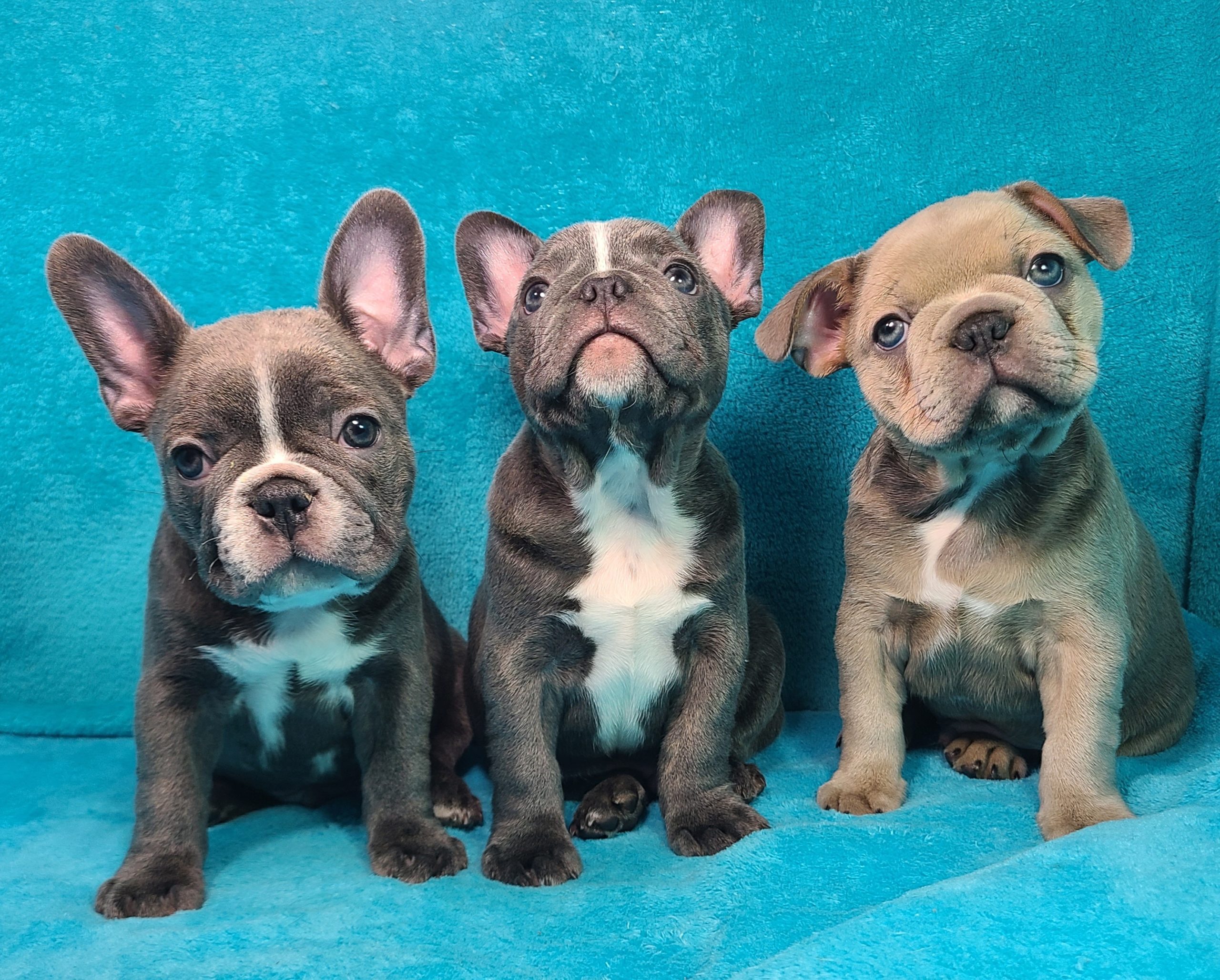 Our amazing Frenchtons are raised for extended longevity, fantastic bloodlines, exceptional personalities, and excellent markings. Our testimonials and references are proof. At weaning, our babies are on a healthy home prepared/species appropriate diet, purified water, and a longevity supplement. They are potty trained to about the size of one room by about 8 weeks of age and are doing some early crate training until they go to their new families. We expect these babies to weigh 17-20 pounds full grown. Biggest brother Carl will be on the top end of this scale, maybe even 5 or so more pounds and smallest sister blue Caila may stay on the smaller side of this estimate.